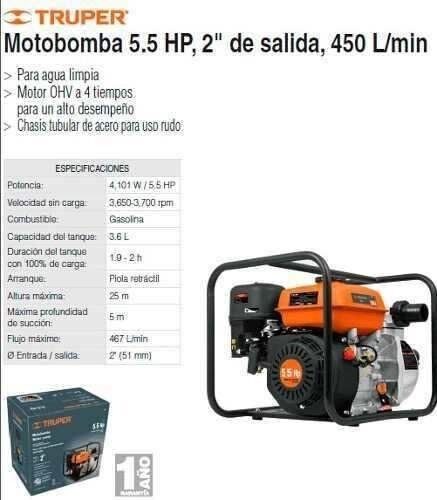 Motobomba Gasolina Para Agua 5.5 Hp Salida 2» Truper 19613