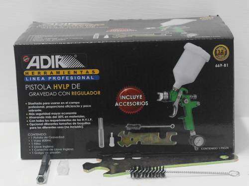 Pistola Hvlp De Gravedad Con Regulador Y Accesirios Adir 669